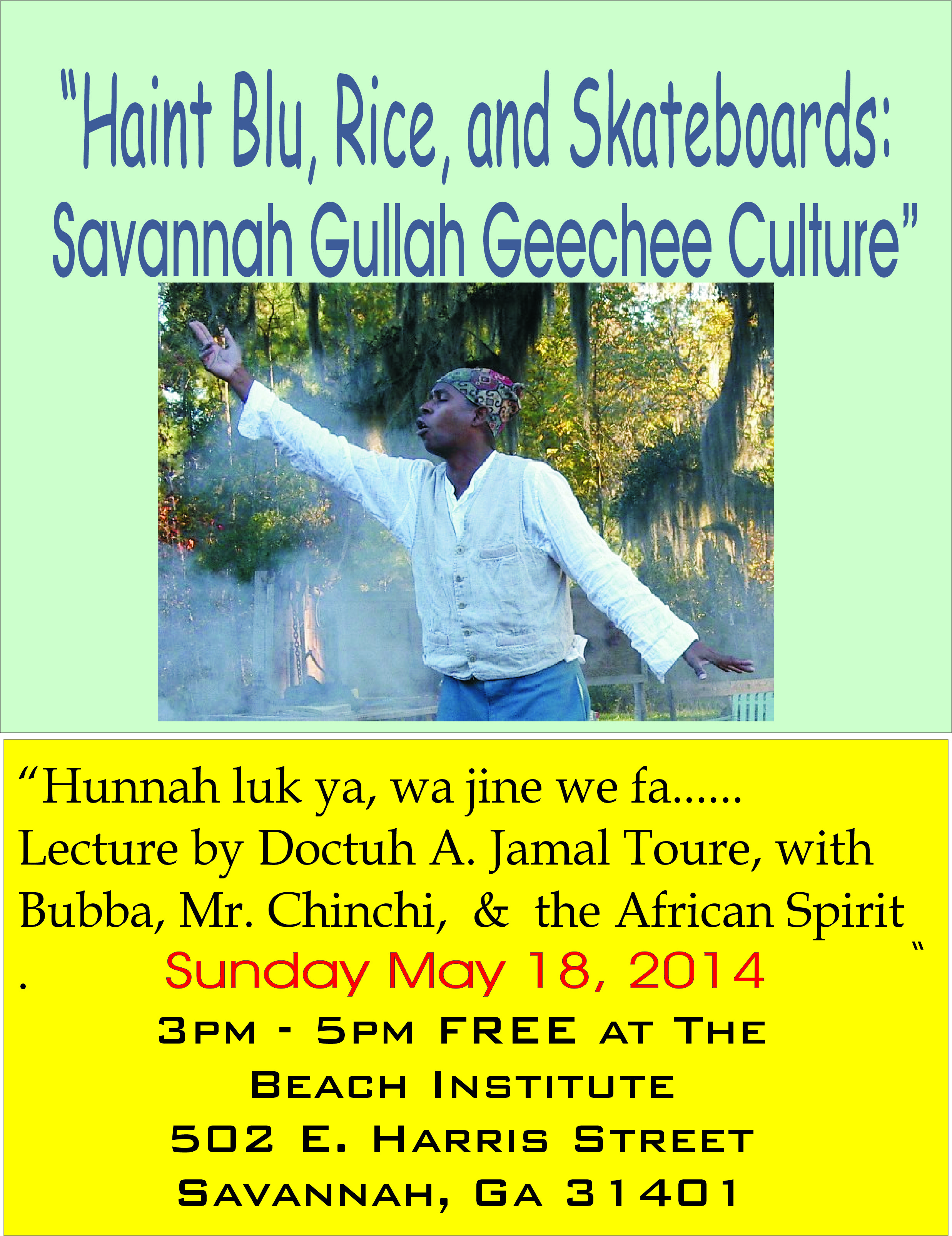 - Tagged: Beach Institute, Black history, cultural heritage, culture, Dr. Amir Jamal Toure, events, GA, Geechee, Gullah, Gullah/Geechee Nation, lecture, Savannah, Savannah Gullah/Geechee Culture